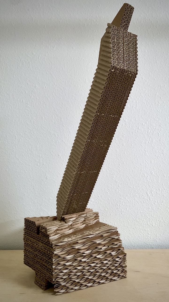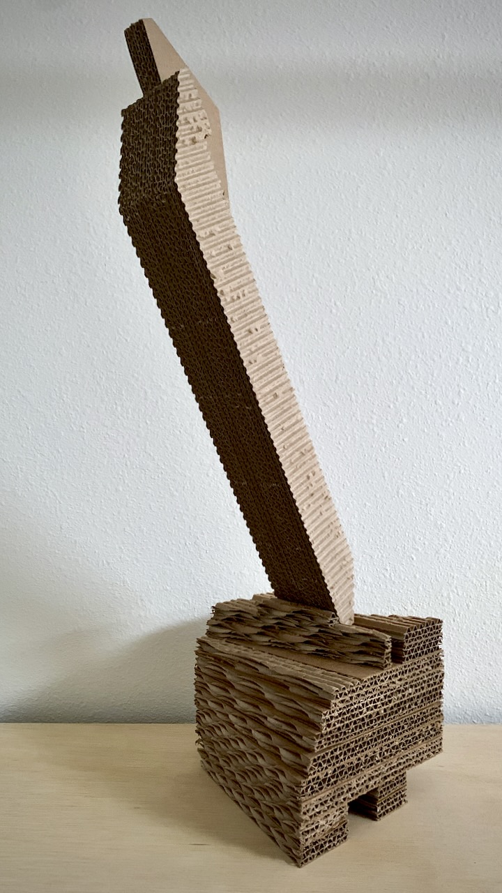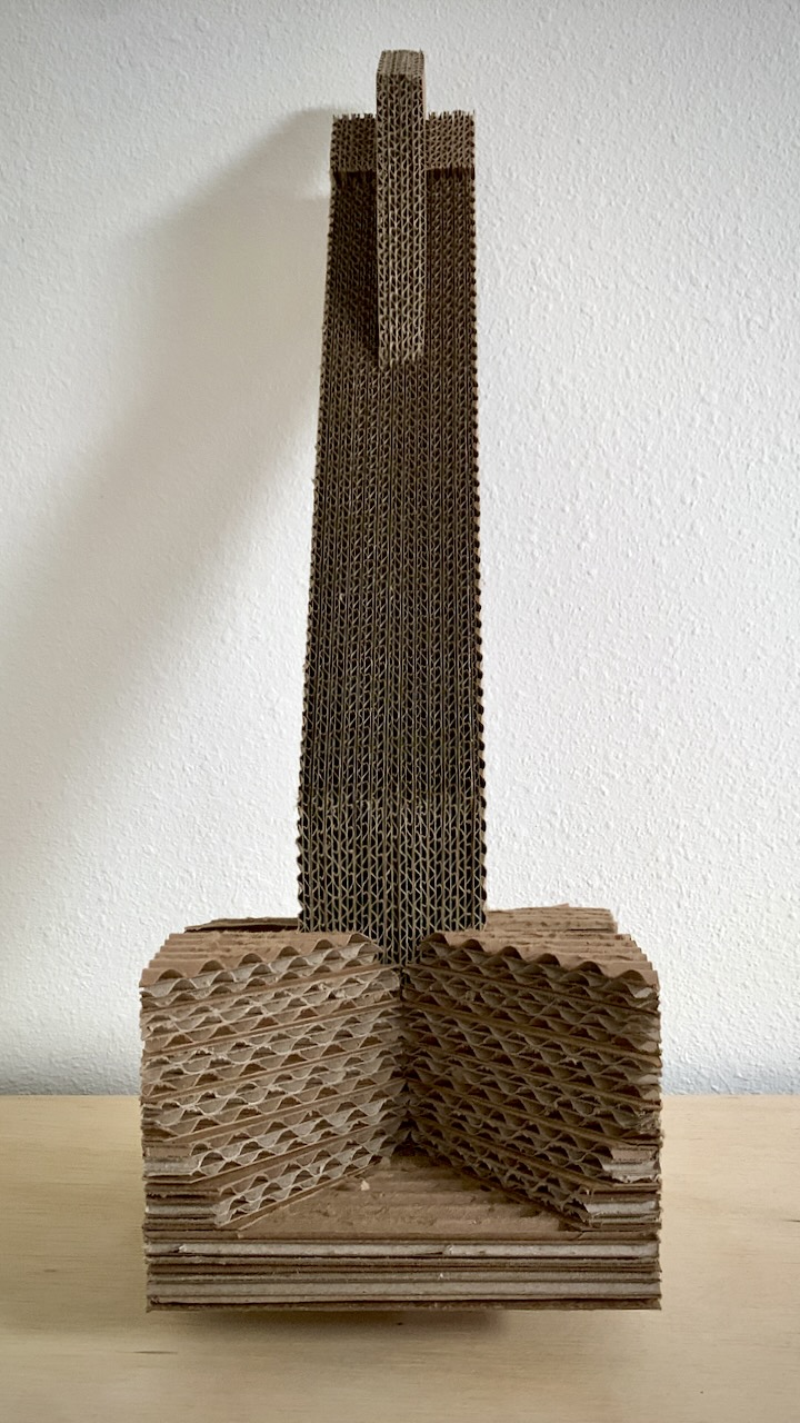 SCULPTURE/MAQUETTE. Corrugated, wood glue. 7 in. x 7 in. x 22.5 in. (approx.)