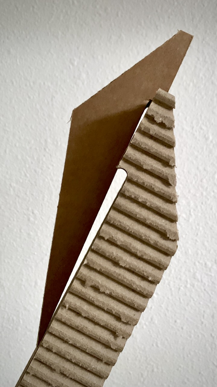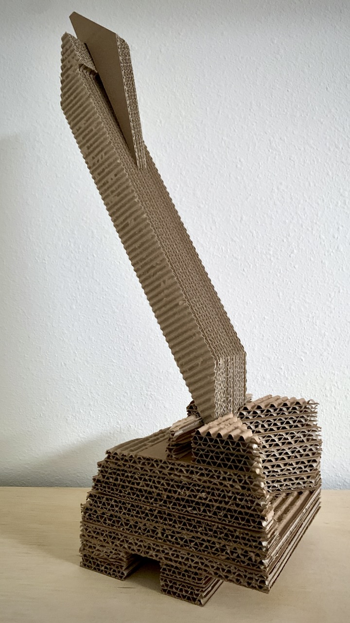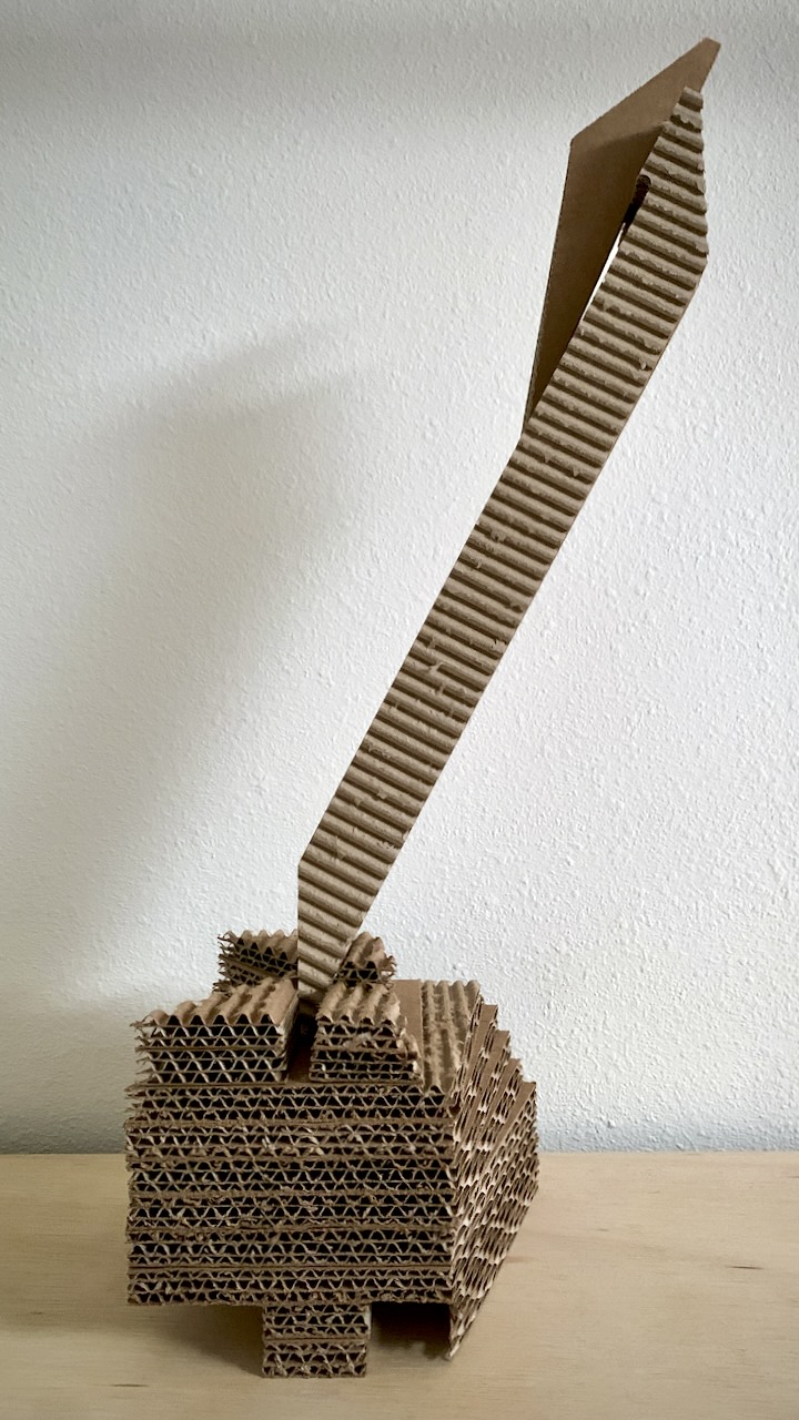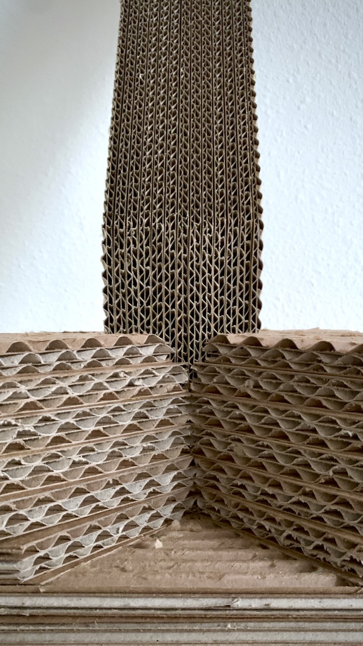 SCULPTURE/MAQUETTE. Corrugated, wood glue. 7 in. x 7 in. x 22.5 in. (approx.)