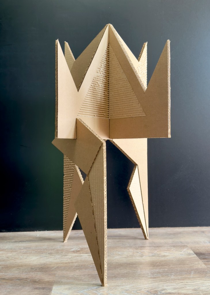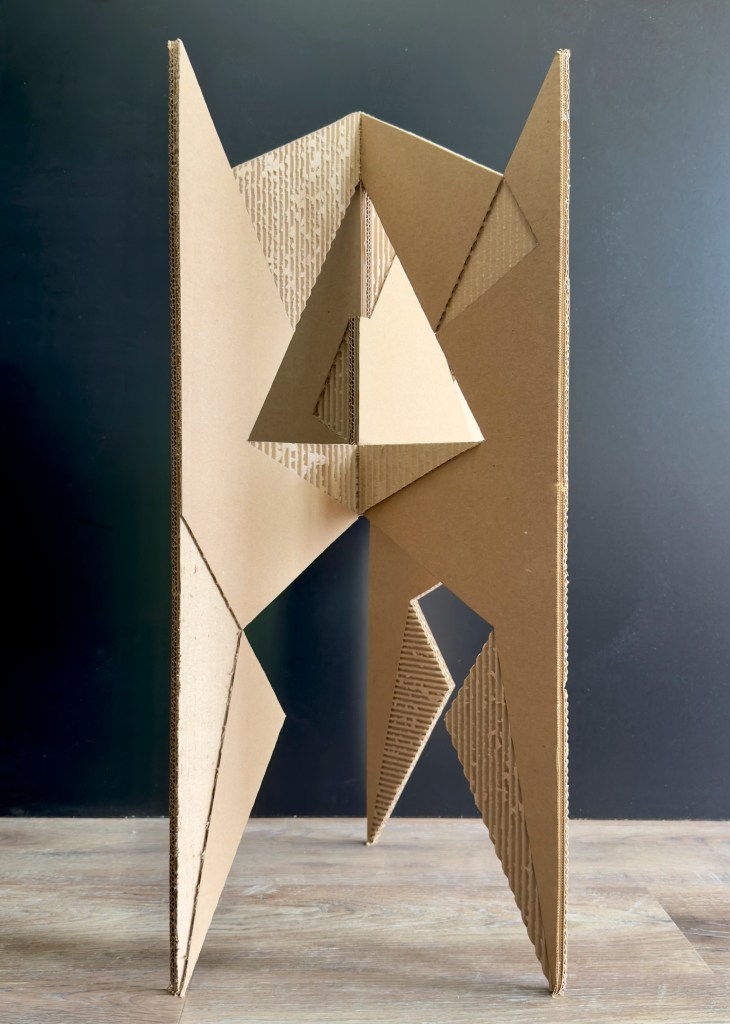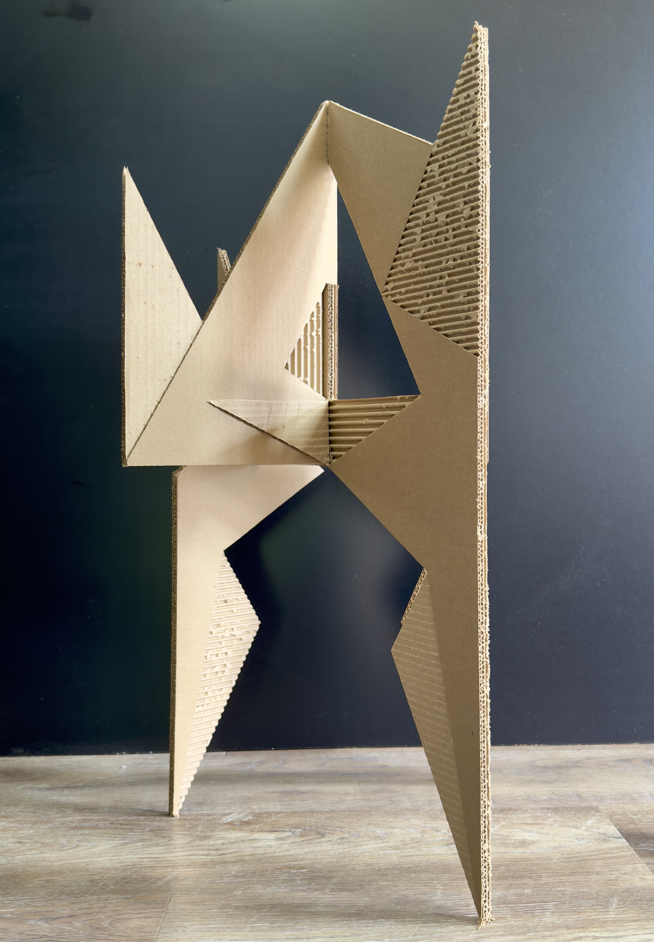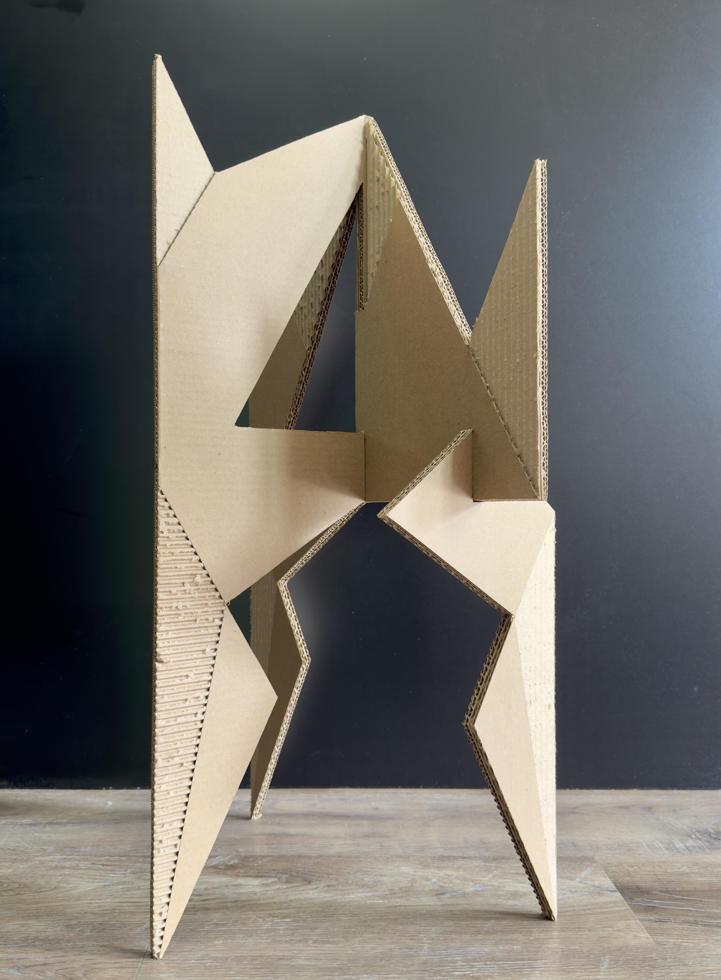 CORRUGATED SCULPTURE. Corrugated cardboard, wood glue. 30 in. x 18 in. x 18 in.